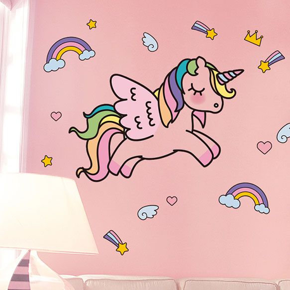 1pc الكرتون يونيكورن ملصقات الحائط لغرف بنات غرف نوم الاطفال ديكور الحيوان جدار الفن حزب يونيكورن الاطفال ديكور غرفة 2021 من miss 8913 31 4ر س موبايل dhgate