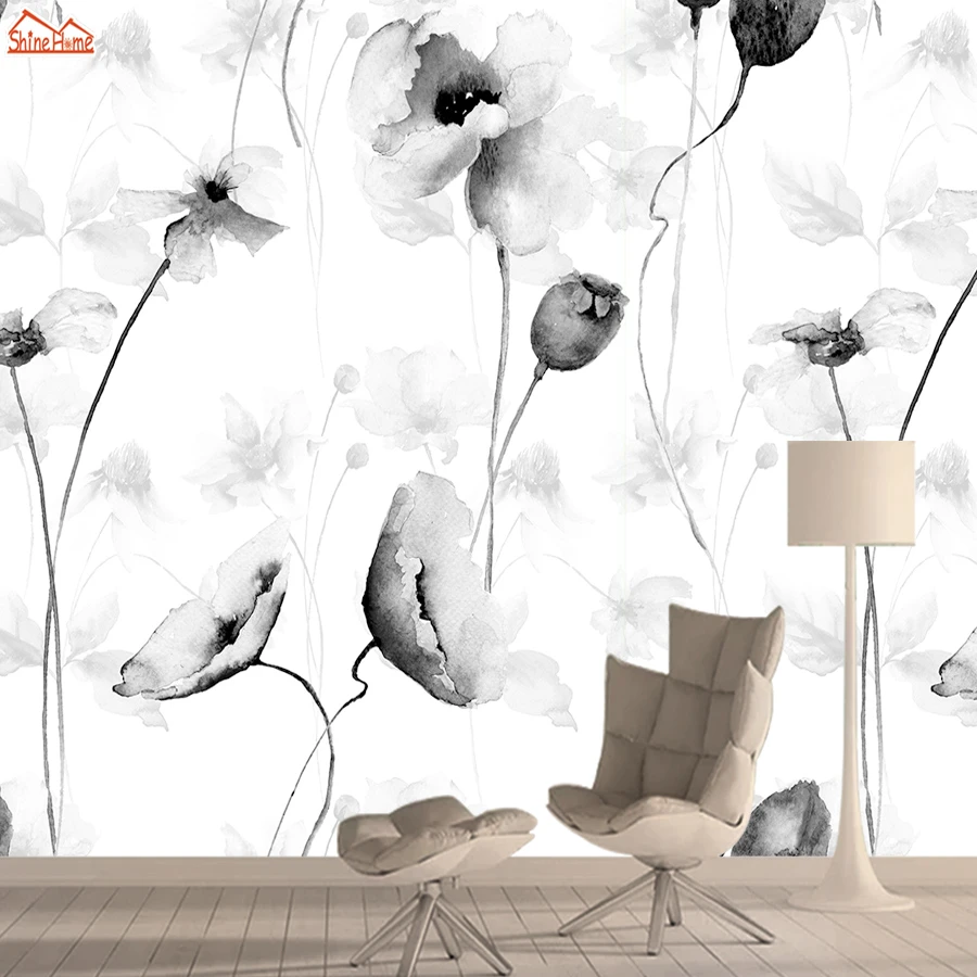 الأسود زهرة بيضاء ورق حائط المنزل ديكور 3d خلفيات جدارية خلفيات لغرفة المعيشة الذاتي لاصق الجدران الجداريات لفات wallpapers aliexpress